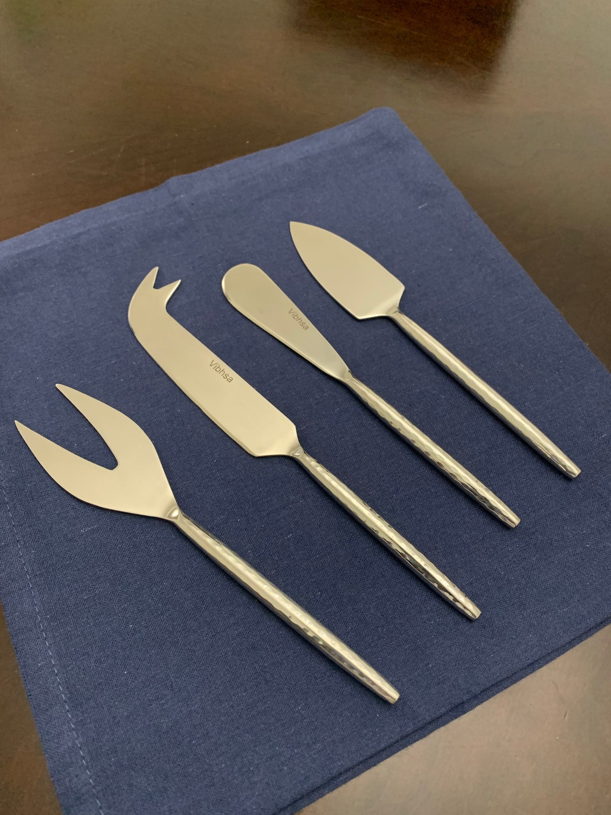 Set of cheese knife, cheese spreader, cheese Fork and hard cheese knife.