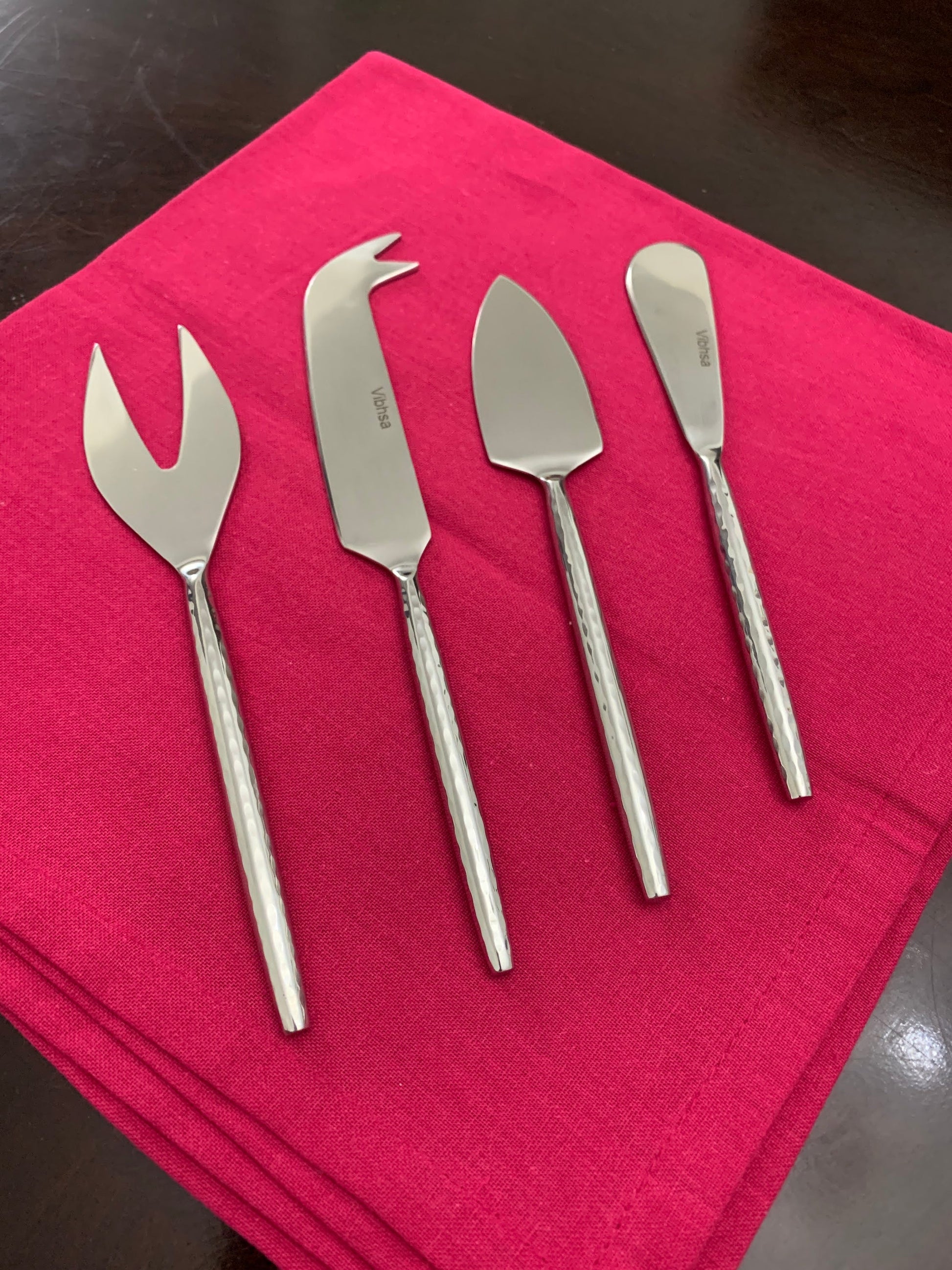 Cheese Knives Stainless Steel set of 4 hand forged, Silver