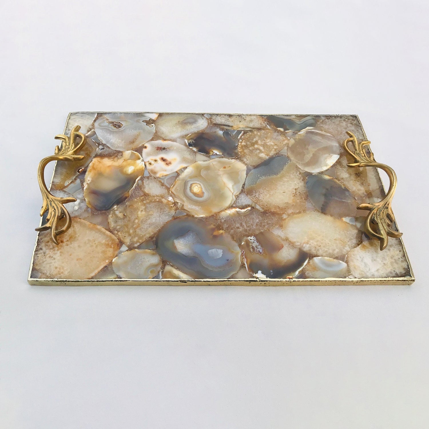 The natural look of agate stone creates a unique abstract pattern on this serving board. The tray is ideal for serving cheese or a fruit course.