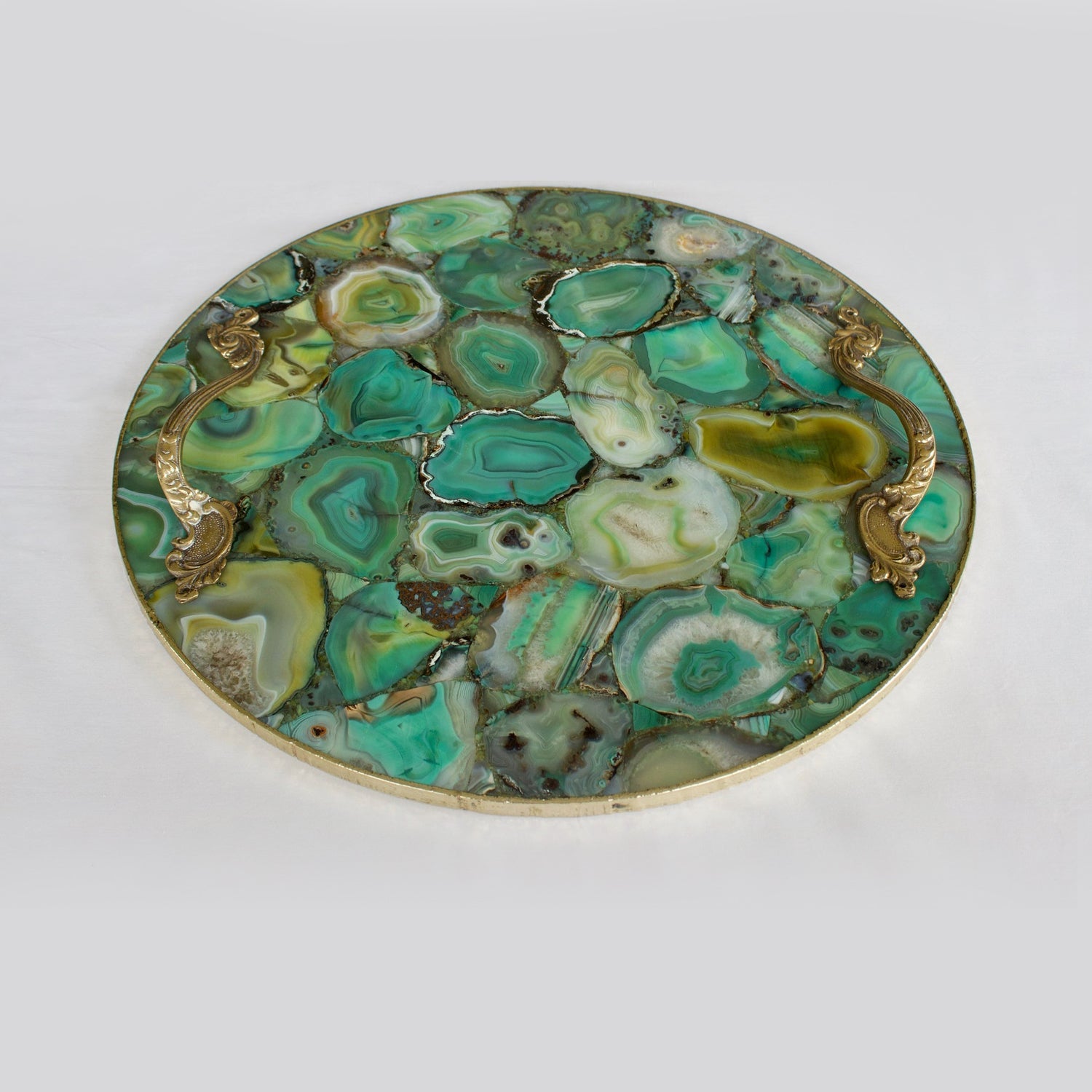 The natural look of agate stone creates a unique abstract pattern on this serving board. The tray is ideal for serving cheese or a fruit course.