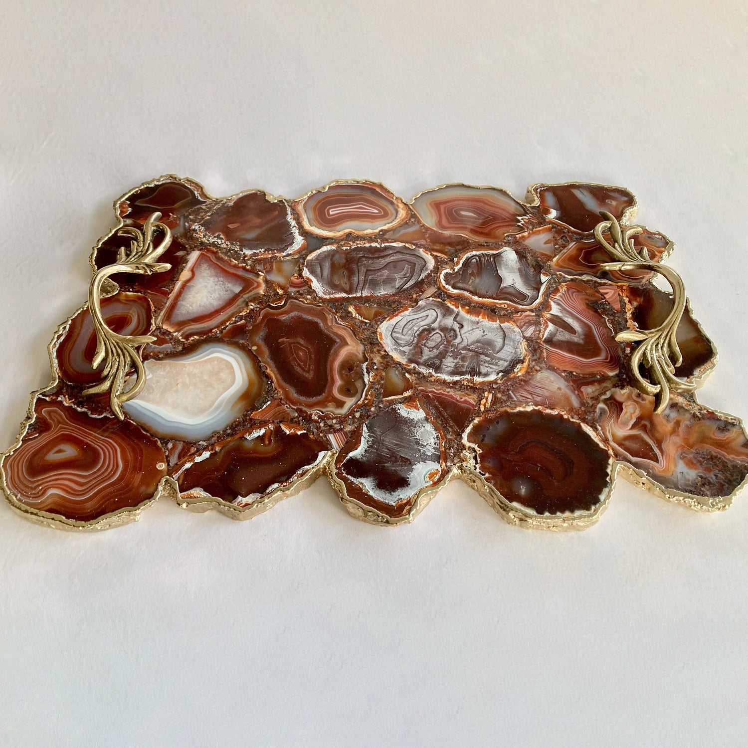 Large Red Agate Serving Tray With Brass Handles/Personalised