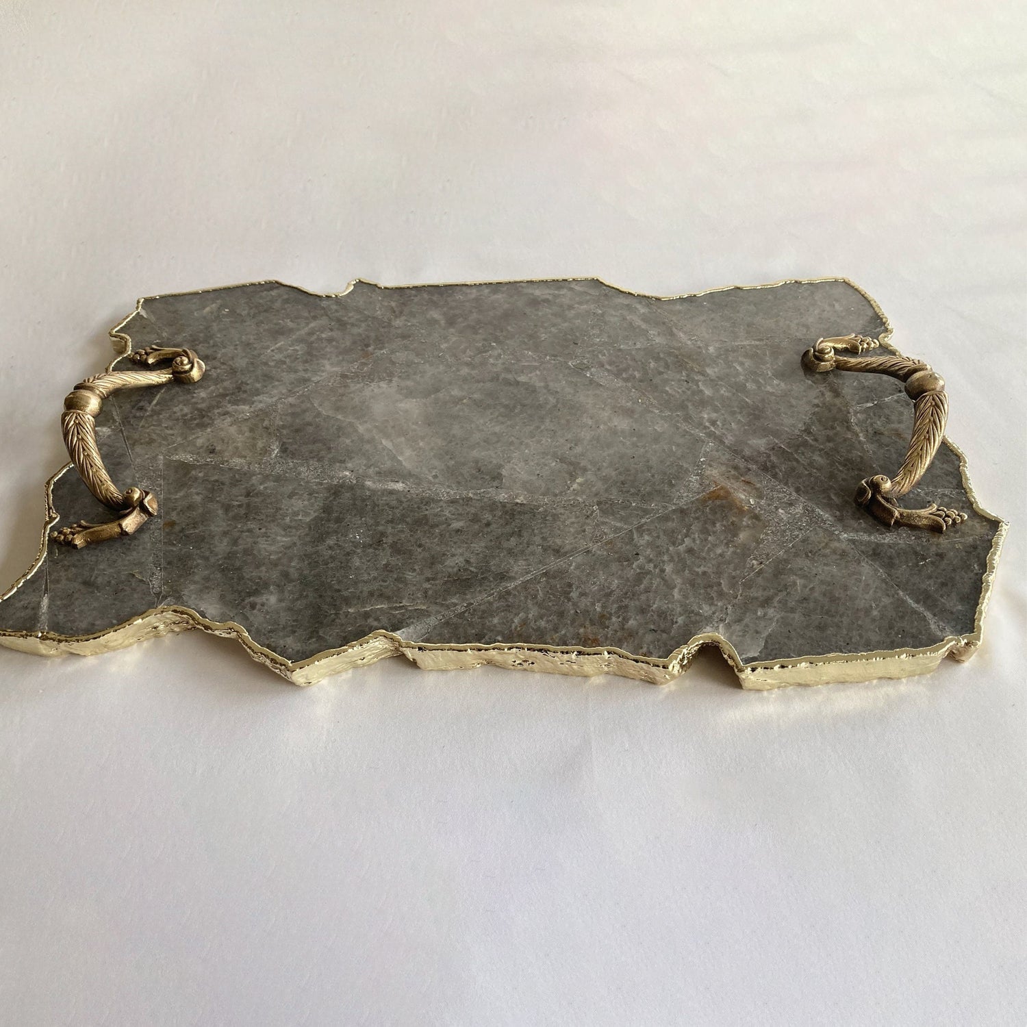Large Smoky Grey Agate Serving Tray With Brass Handles/Personalised