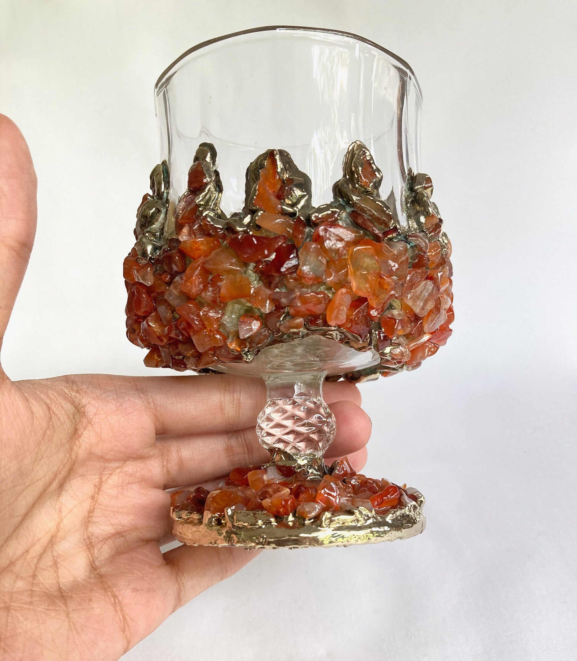 Set of 2 |Crystal Wine Glasses with Gold Plated Red Agate/Quartz