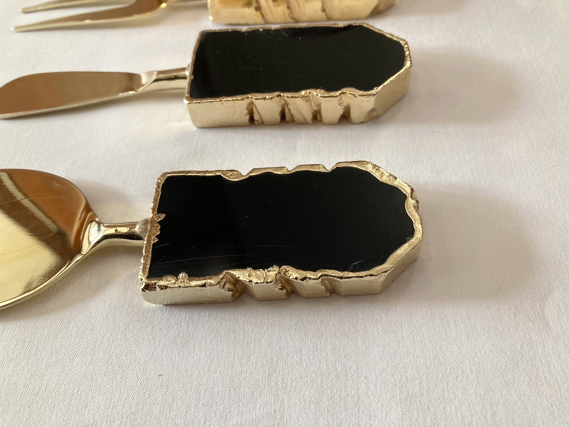 Set of 3 Black Agate Cheese Knives/Spreaders