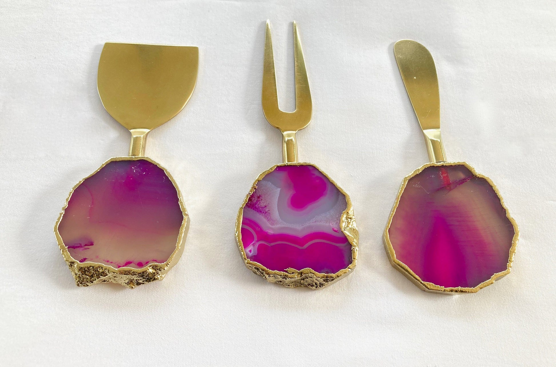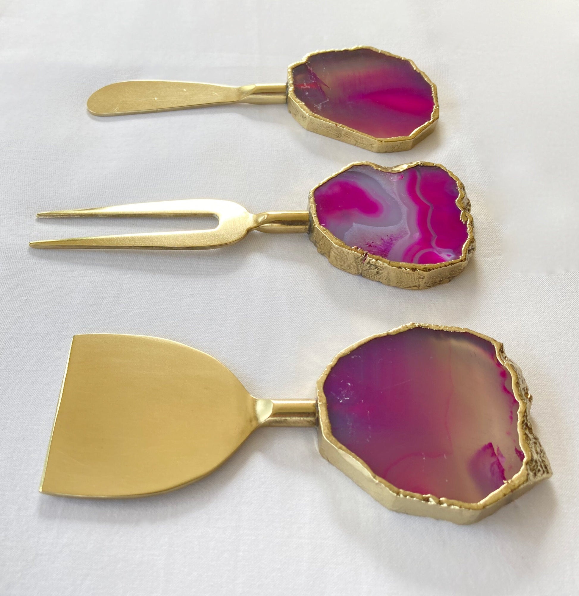 Set of 3 Pink Agate Cheese Knives/Spreaders