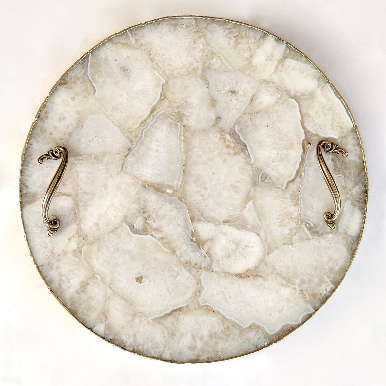 The natural look of agate stone creates a unique abstract pattern on this serving board. The tray is ideal for serving cheese or a fruit course.