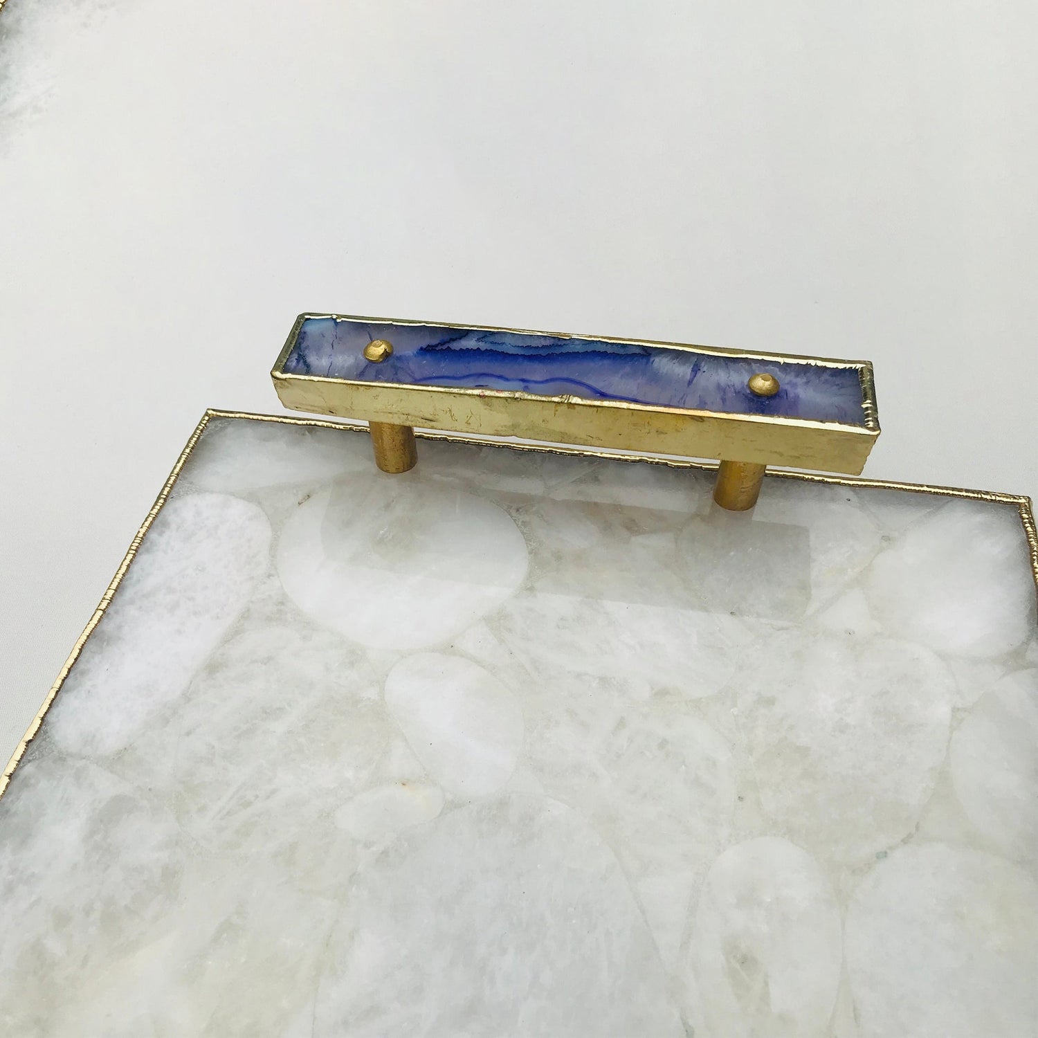 White Crystal Agate Plated Serving Tray With Purple Agate/Onyx